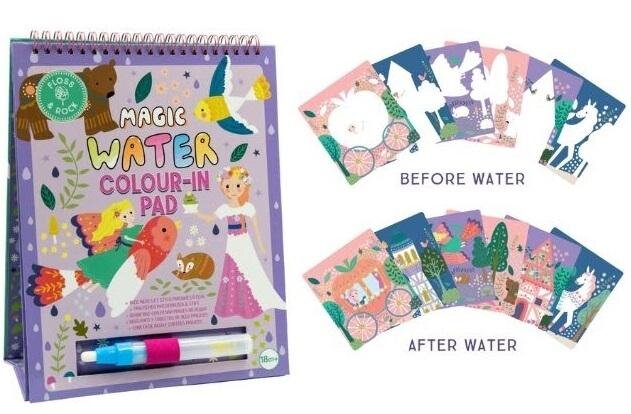 Kolorowanka wodna z pisakiem i podpórką to świetna zabawa dla najmłodszych. Wystarczy napełnić pisak wodą i zachęcić dziecko do kreatywnej zabawy, aby zobaczyć, jak kolory i kształty magicznie się pojawiają, a po wyschnięciu znikają. Dziecko będzie się świetnie bawić, odkrywając kolorowy, bajkowy świat. Sześć zabawnych kart jest połączonych w spiralnie oprawionej okładce, dzięki czemu można je odwracać po ukończeniu. Podpórka wygodnie podtrzymuje karty wielokrotnego użytku. Po zakończeniu zabawy wystarczy złożyć podpórkę, a dzięki elastycznej gumce pisak zawsze będzie na swoim miejscu.