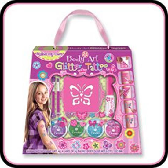 Roztomilá tetovací sada, kterou potěšíte i rodiče. Barevně, kreativně, třpytivě, ale samozřejmě dočasně a bezpečně! Set obsahuje 12 ozdobných tetování, 12 šablon, lahvičku lepidla, 4 dózičky s barevným třpytivým práškem a 2 štětce. Velmi oblíbený dárek na dívčí party! číst celé