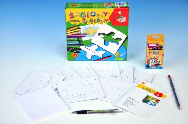 Skvělá výtvarná hračka a naučná pomůcka pro zdokonalení výtvarných schopností a jemné motoriky dětí. Děti se velmi snadno naučí malovat oblíbené tvary a trénují si uvolnění zápěstí pro správnou manipulaci s psacícmi potřebami. Namalované obrázky si mohou vybarvit a dotvořit podle své fantazie, nebo je zakomponovat do většího výkresu, což více podporuje jejich zájem o hru. Balení obsahuje: Pozitivy šablon - 8 ks, Negativy šablon - 8 ks, Barevné pastelky - 12 ks, Obyčejná tužka pro kontury - 1 ks, Papírový blok - 1 ks, český a slovenský návod - 1 ks