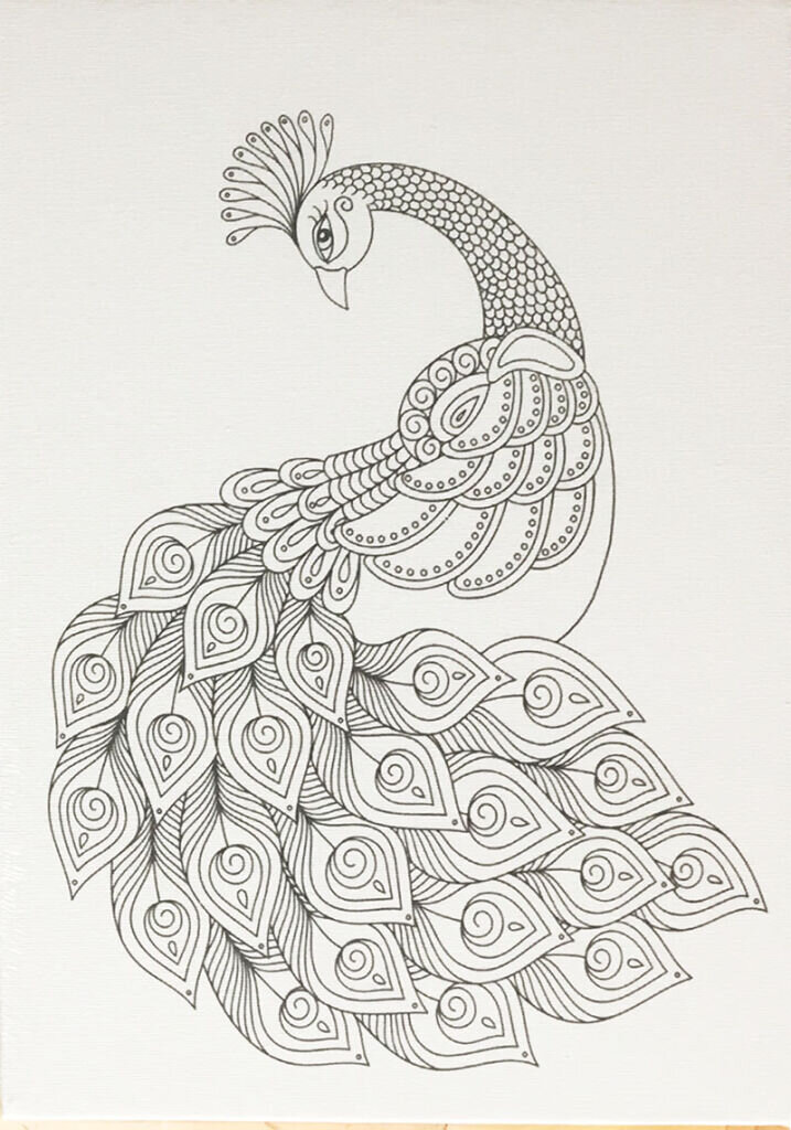 Malířské plátno s předtiskem páva, velikost A4.Provedení: A4 číst celé