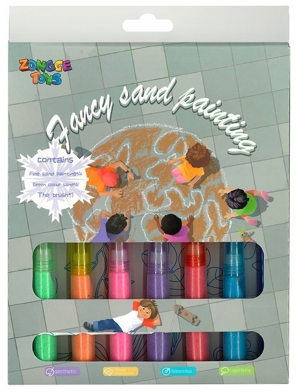 MALOWANIE PIASKIEM - MORSKIE ZWIERZĘTA KARTON , pak-126 W zestawie pędzelek,4 szablony-naklejki, oraz 6 kolorowych pisaków z piaskiem do malowania