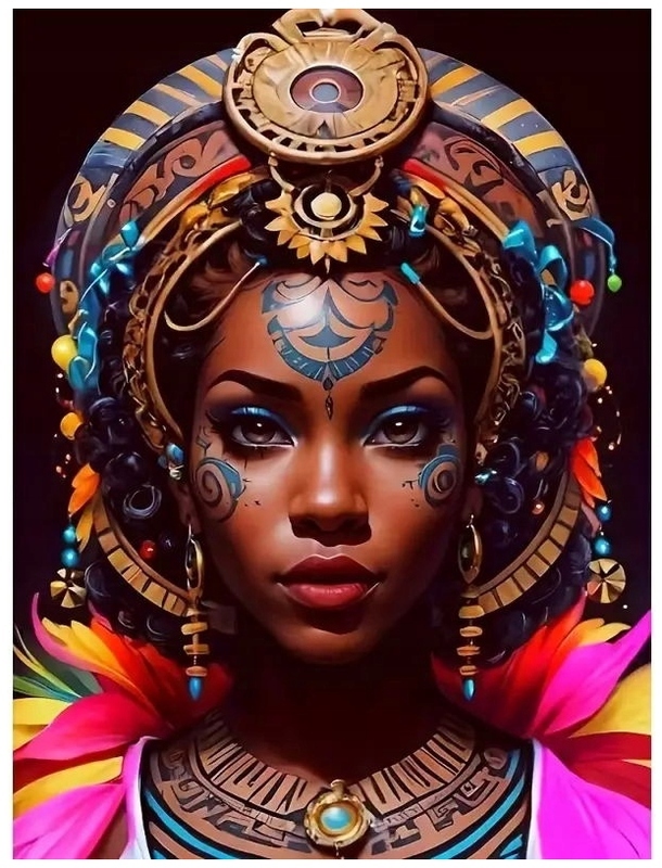 MALOWANIE PO NR. KOBIETA PORTRET AFRYKANKI W TATUAŻACH, PAK 15 40X50 číst celé