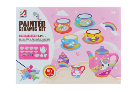 Tento keramický čajový set je navržen tak, aby bavila děti i rodiče. Sestává ze 4 šálků, 4 podšálků, konvičky, cukřenky, mléčenky, štětečku, paletky a 6 barevných barviček, které umožňují přeměnit obyčejný čajový set na jedinečné umělecké dílo. Součástí balení je vše potřebné pro první pokusy s malováním - stačí jen kreativita a chuť tvořit.