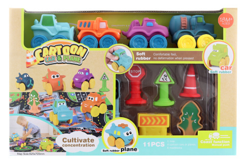 Dopravní sada s kobercem pro nejmenší. Balení obsahuje koberec, 4 autíčka a 6 doplňků (značky, strom, semafor). Materiál plast. Baleno v krabici. Rozměry balení cca 45x29x8 cm. Věk 18m+