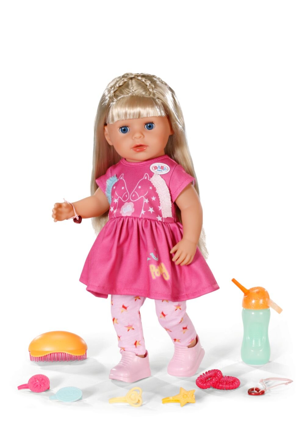 Panenka Sarah se svou výškou 36 cm skvěle zapadá do rodiny panenek BABY born. Má 7 funkcí a všechny fungují bez baterií. Její nádherné dlouhé vlásky jsou vyrobeny z vysoce kvalitního nylonu a lze je upravovat, česat a tvořit z nich účesy pomocí doplňků, které jsou součástí balení. Pečovat se ale dá nejen o vlásky. Sarah umí pít ze své lahvičky, roní panenkovské slzy a když si lehne, zavře oči. Má také pohyblivé klouby. Dokáže hýbat koleny a umí sama stát. Díky tomu je vhodná pro malé děti od 3 let, ale také pro starší děti.
