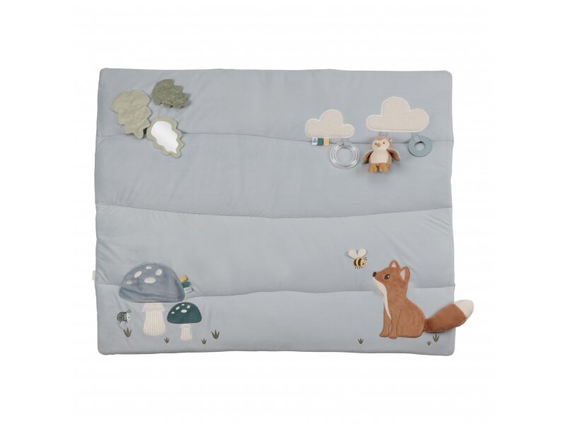 Měkká a příjemná hrací deka Forest Friends přináší rozmanité aktivity, které vaše dítě zabaví a rozvíjí jeho smysly. Na dece najdete plyšovou lišku, hebké houbičky, šustící lístky s bezpečným zrcátkem, roztomilou plyšovou sovu a mráčky s chrasticím kroužkem a kousátkem. Tyto prvky podporují hmatové, zrakové i sluchové vjemy, což je ideální pro motorický i smyslový rozvoj vašeho miminka.