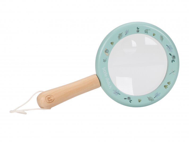 Tato lupa je vyrobena s kvalitním dřevěným rámem a ergonomickou rukojetí, které umožňují pohodlné a bezpečné držení. Díky unikátnímu designu obsahuje integrovanou malou čočku uvnitř větší, která přináší ještě detailnější pohled na drobné věci kolem nás. Navíc je vybavena praktickou šňůrkou pro zavěšení, takže ji děti mohou mít vždy po ruce a zároveň se neztratí.