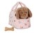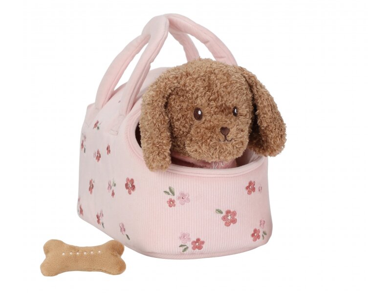 Pejsek přichází v elegantní květované tašce s předním otvorem, aby mohl zvědavě vykukovat ven. Díky tomu si ho děti mohou vzít kamkoli - na procházku, na výlet, do školky nebo třeba k prarodičům. Kolem krku má uvátaný šátek se svým jménem. Plyšová kost na hraní má uvnitř magnet, takže drží pejskovi u tlamičky.