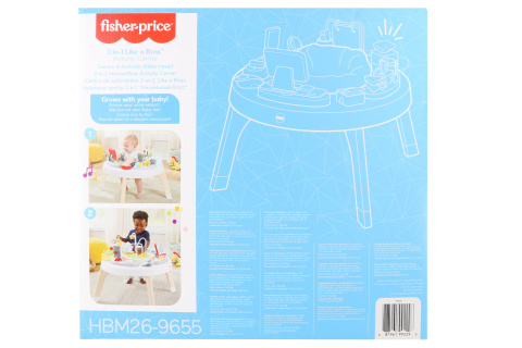 Dětská kancelář 2 v 1 s aktivitami od Fisher-Price® spolehlivě zabaví vašeho malého velkého šéfa! Vaše děťátko se může posadit do otáčecího sedátka uprostřed centra zábavných aktivit a užít si zábavu s interaktivními aktivitami po jeho okrajích. Od hrnečku na kafe, na kterém si procvičí třídění tvarů, po interaktivní laptop, který vydává hudbu, zvuky a písničky - vaše dítě tady najde všechno, co potřebuje pro produktivní den plný domácího hraní. Když potom povyroste, jednoduše doprostřed zaklapněte hru s korálky místo sedátka a přeměňte centrum aktivit pro miminko na cool stoleček pro batole, které si užije hraní ve stoje. Používejte jen pro dítě, které je schopné bez pomoci držet hlavu vzpřímeně a které není schopné z výrobku vylézt nebo se vyplazit.