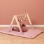 Stylová dřevěná hrazdička se třemi zavěšenými plyšovými hračkami v podobě motýla, květiny a ptáčka poskytne vašemu miminku spoustu zábavy při hraní na dece. Jednotlivé hračky lákají dítě ke zkoumání a dotýkání, při pohybu chrastí, šustí a pozornost upoutá i bezpečné zrcátko.