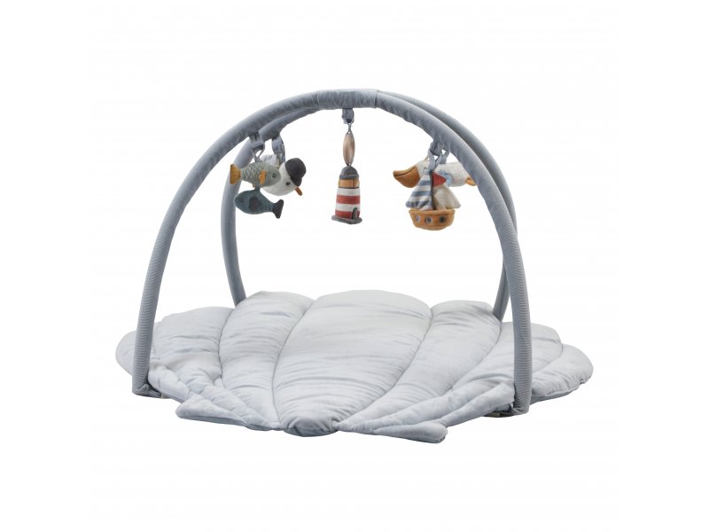 Měkká hrací deka ve tvaru mušle s hrazdou, na které jsou zavěšené hračky v podobě plachetnice, racka, pelikána, majátku a dvojice rybiček. Při zkoumání hraček upoutá pozornost dítěte chrastění, šustění, pískání i zvonění. Hračky jsou odnímatelné a je možné je používat i samostatně.