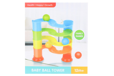 Plastová konstrukce dráhy je připravena na všechny dětské hry a zároveň je bezpečná a snadno se udržuje. Součástí balení jsou 4 velké kuličky, které jsou vhodné pro malé děti od 1 roku. Kompaktní rozměry balení (cca 24,5 x 27,5 x 10,5 cm) zajišťují, že dráha nezabere zbytečně místo, a lze ji snadno skladovat i přenášet.