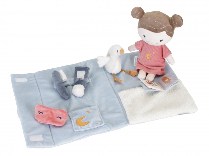 Originální sada s panenkou v krásném provedení z jemného plyšového materiálu. Rosa je nachystaná na přespání u kamarádky a má s sebou všechno potřebné: peřinku, plyšáčka v podobě roztomilé husy, kartáček s pastou, knížku na čtení před spaním a masku na oči. Stejně jako si vaše děti užívají spaní u babičky nebo u kamarádů, bude si i Rosa užívat svůj pobyt na návštěvě u vás doma.