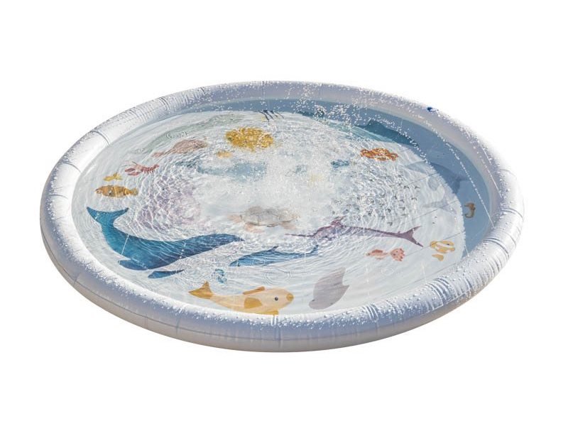Originální hrací podložka s vodotryskem, který vytvoříte jednoduše připojením na zahradní hadici s pomocí přiložené spojky. Podložka s krásným potiskem motivů ze života pod mořskou hladinou je ideální doplněk na zahradu během horkých letních dní. Děti si budou užívat běhání přes stříkající vodotrysk i hraní si s vodou na podložce, která funguje jako mělký bazének.