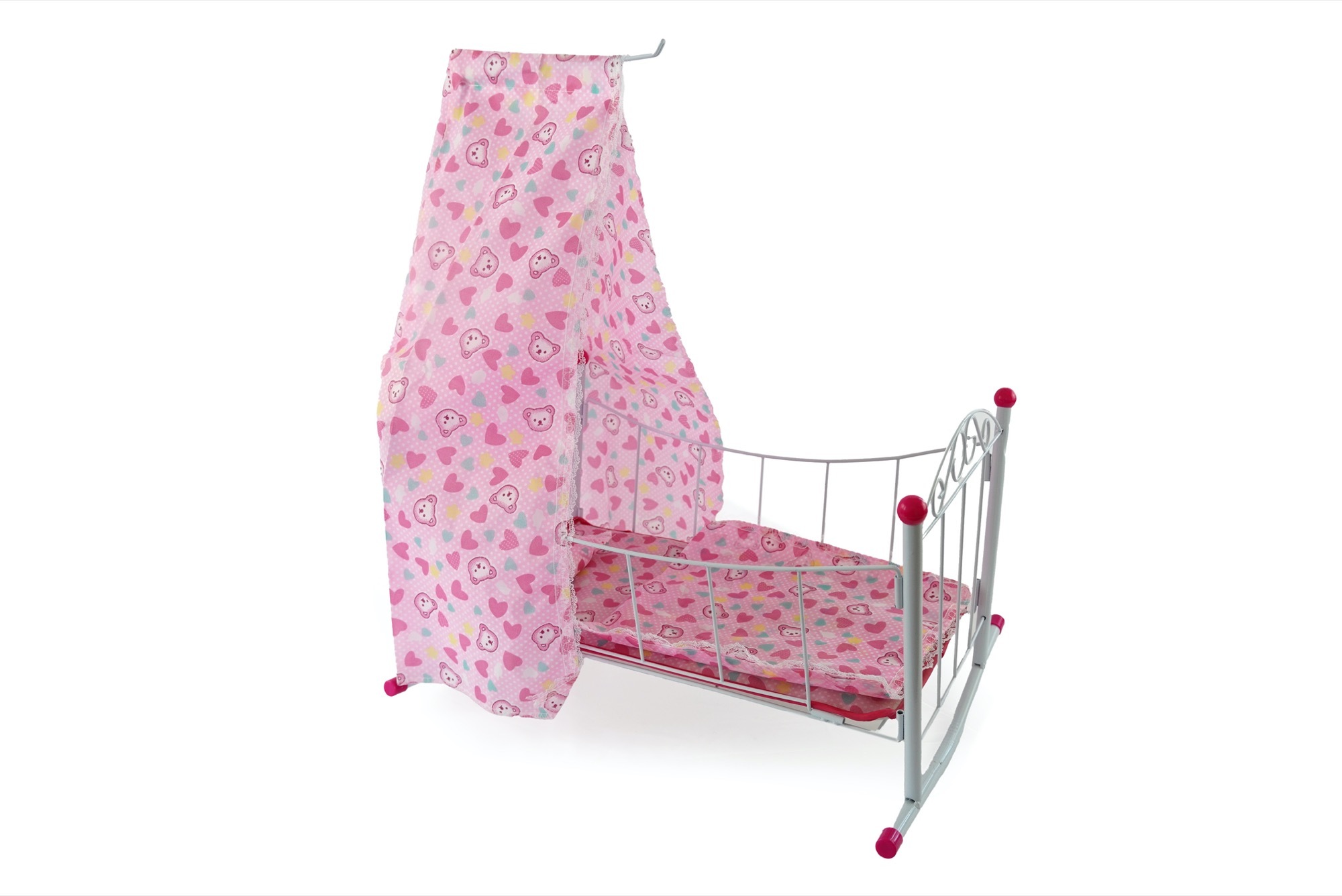 Kovová postýlka pro miminko max velikosti 38 cm. Postýlka je s nebesy, slabou peřinkou malým polštářkem. číst celé