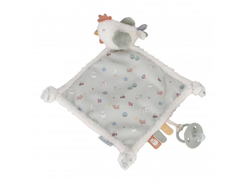Muchláček slepička Farma je ideálním parťákem pro klidné usínání i veselé chvíle plné hraní a mazlení. Je vyroben z velmi jemného a příjemného materiálu, který je vhodný již od narození, aby vaše děťátko mohlo mít vždy u sebe měkkou a bezpečnou hračku.