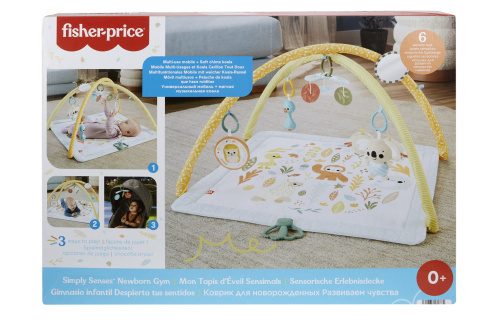 Hrací dečka se senzorickými hračkami od Fisher-Price® je barevná podložka pro miminka, která roste spolu s vaším děťátkem od hraní si vleže až po hru na bříšku. Tato podložka obsahuje oblouk se 6 odnímatelnými smyslovými hračkami, včetně přenosné plyšové koaly s jemným zvoněním a kolotočem, které lze připevnit ke kočárku a užít si tak zábavu i na cestách. Mezi další smyslové hračky patří zrcátko pro sebepoznávání, chrastítko husa, kousátko bez BPA a měkká mačkací hračka, které lze zavěsit na oblouk dečky nebo použít pro hraní na cestách. Věk 0+