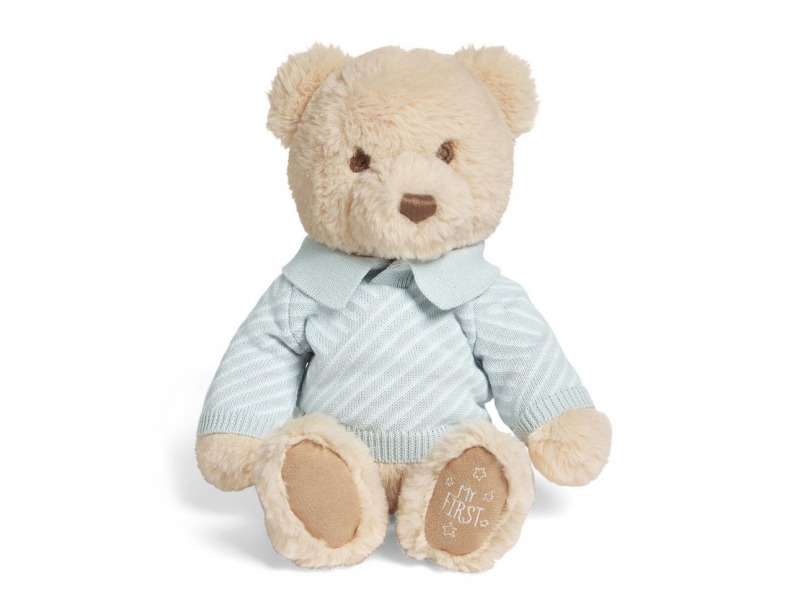 Měkoučký plyšový medvídek v krásném pleteném svetru s límečkem. Vhodný na hraní i do postýlky na příjemné usínání.