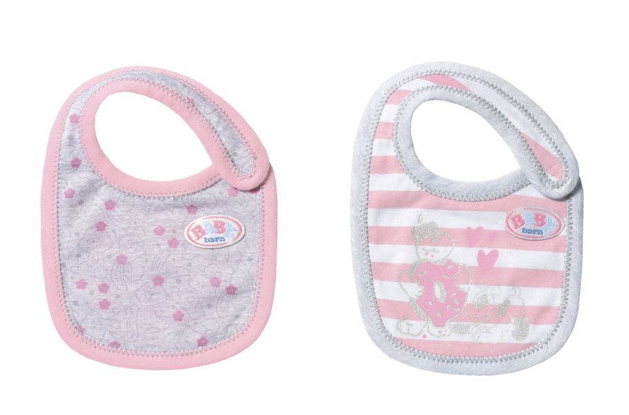 Naštěstí jsou medvídek Bruno a pejsek Bello na bryndáku s růžovo-bílými pruhy zaměstnáni koblihou. Kdo ví, jestli by jinak nesnědli BABY born všechnu kaši. Na šedém bryndáku si zajíček Benno pochutnává na salátu z mrkvičky a kytiček. Jednu kytičku si dal i za ucho. Bryndáky se za krkem zapínají na suchý zip. Honem, BABY born už má hlad a není čas ztrácet čas. • Originální oblečení pro panenky BABY born. • Rozšiřuje možnosti hry, podněcuje fantazii a podporuje kreativní hru na malé rodiče. • Jednoduše se obléká. BABY born Bryndák ve dvou různých provedeních.