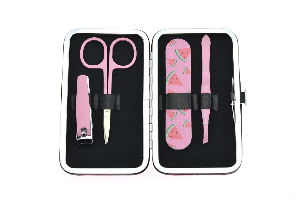 Manikůra v pouzdře s potiskem vodních melounů. Sada obsahuje pilník, pinzetu, nůžtičky a kleštičky. číst celé