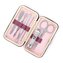 Elegantní cestovní manikúrní set v jemném růžovém provedení obsahuje všech šest základních nástrojů, které potřebujete pro kompletní péči o své nehty. Stříbrná sada zahrnuje nůžky, kleštičky na nehty, zkosenou pinzetu, pilník, manikúrní tyčinku a zatlačovač kůžičky. Tento praktický set je navržen tak, aby dokonale padnul do kabelky nebo zavazadla, a tak vám umožní upravit si nehty kdykoliv a kdekoliv budete chtít.
