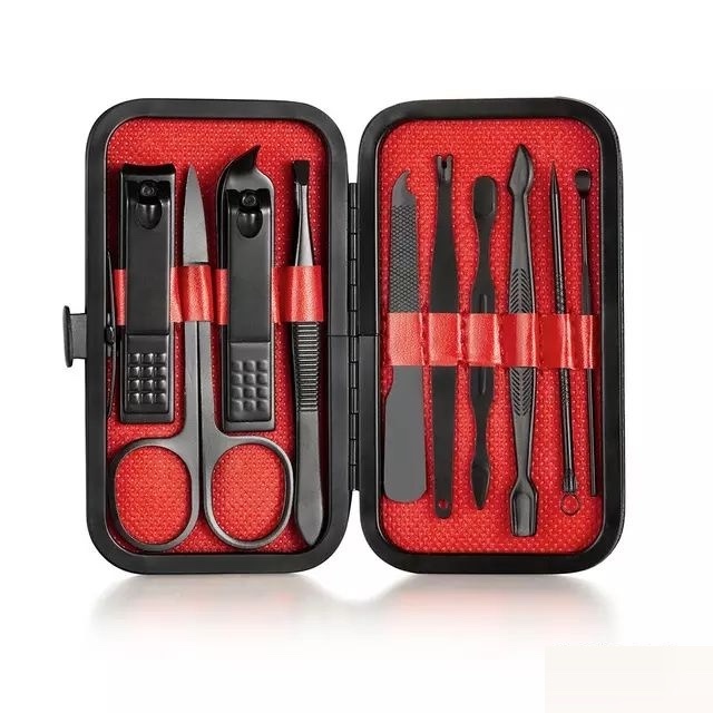 Manikúrní sada pánská De-luxe 10 ks / černá-červená