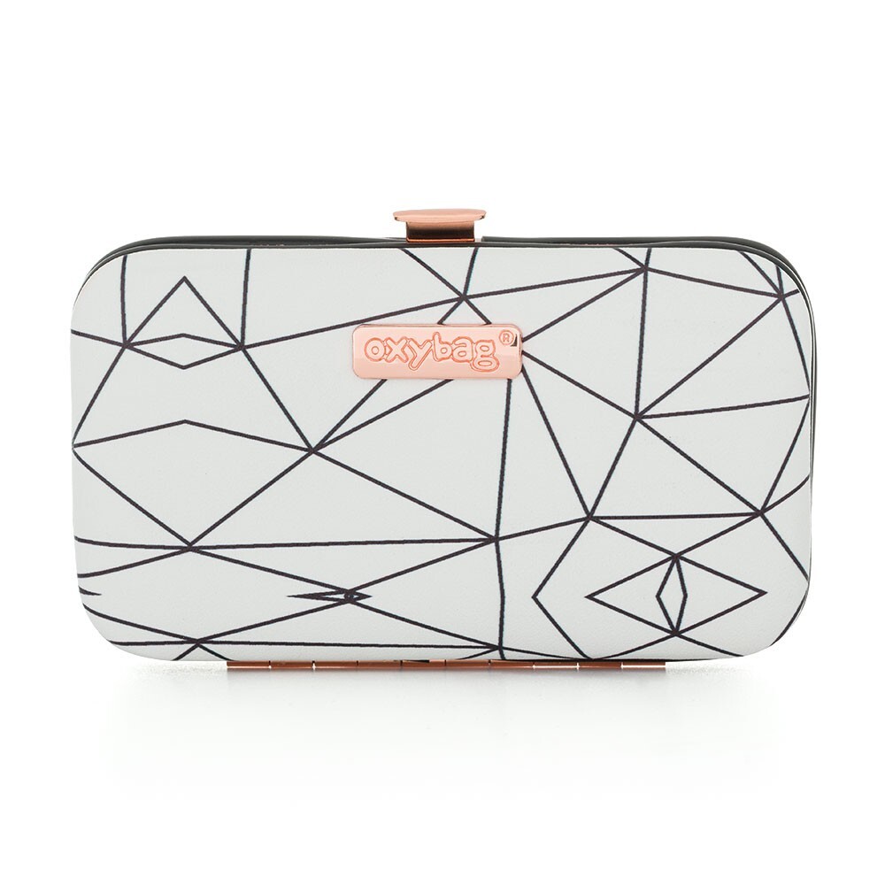 Cestovní manikúrní set 6 ks v černobílém provedení. Stříbrná sada obsahuje nůžky, kleštičky na nehty, zkosenou pinzetu, pilník, manikúrní tyčinku a zatlačovač kůžičky. Ideální velikost do kabelky či na cesty.