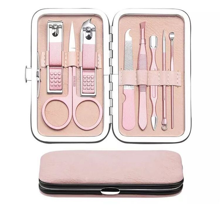 Profesionální manikúra v luxusním koženkovém pouzdře obsahuje 8 nástrojů v růžové barvě s matovou úpravou. Všechny nástroje jsou zhotoveny z tvrdé a odolné nerezové oceli, byly pečlivě nabroušeny. Najdete zde profesionální nástroje pro manikúru a pedikúru stejně jako ostatní nepostradatelné pomůcky v péči o pleť a obočí.