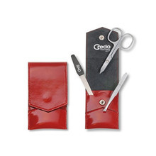 Credo Solingen Luxusní 3 dílná manikúra v červeném pouzdře se sametem Fire 3 unisex