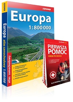 Atlas samochodowy Eropa skala 1:800 000 + instrukcja pierwszej pomocy (polsky)