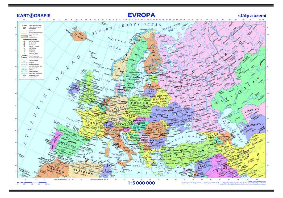 Nástěnná mapa, v novém vydání, přehledně zobrazuje politické uspořádání evropského kontinentu. Na mapě jsou znázorněny a popsány jednotlivé územní celky, hlavní a významná města. nezávislá a závislá území hlavní a významná města Laminovaná mapa s dřevěnými lištami Rejstřík k této mapě... číst celé
