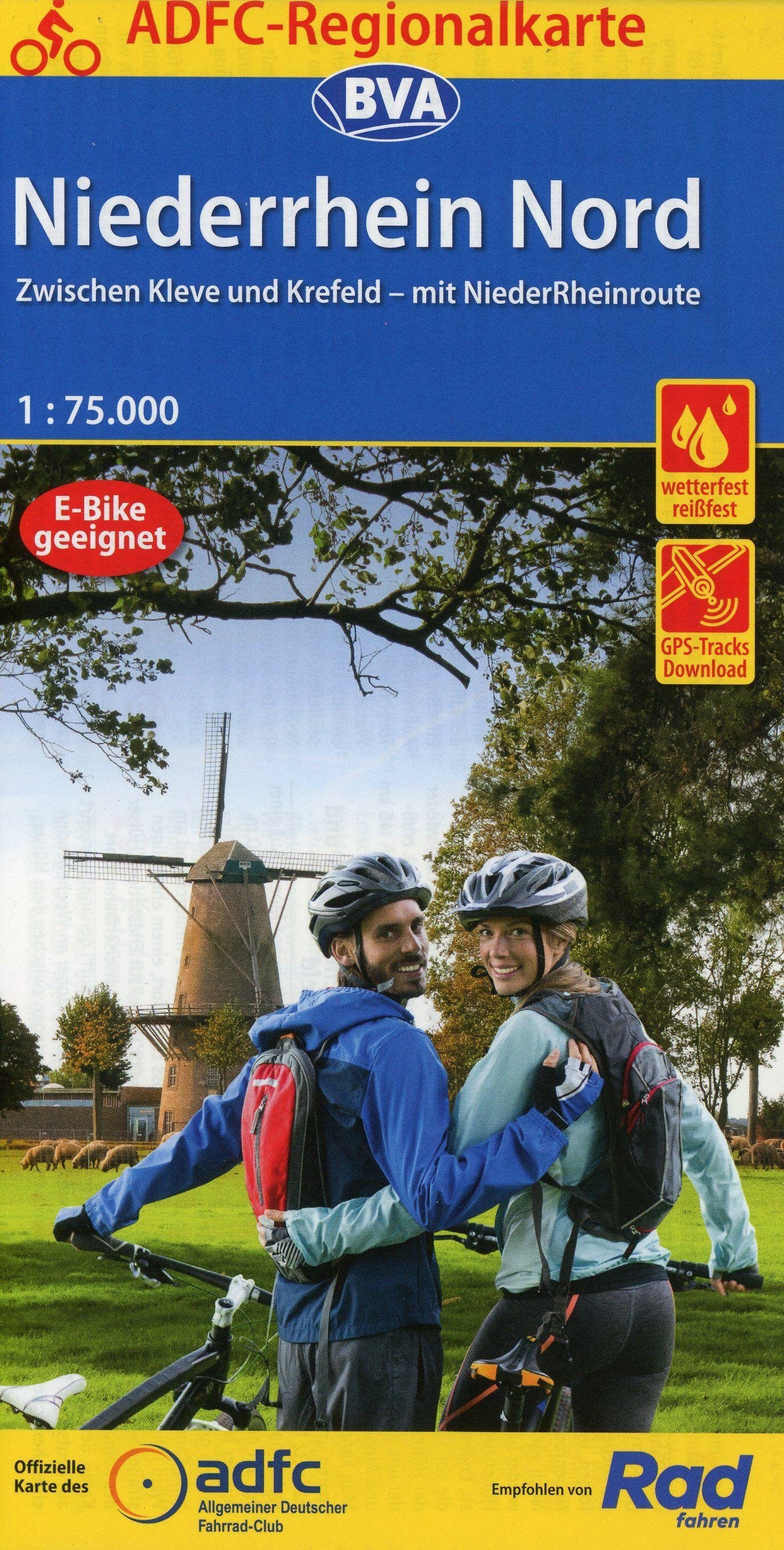 ADFC-Regionalkarte Niederrhein Nord mit Tagestouren-Vorschlägen, 1:75.000, reiß- und wetterfest, GPS-Tracks Download (německy)