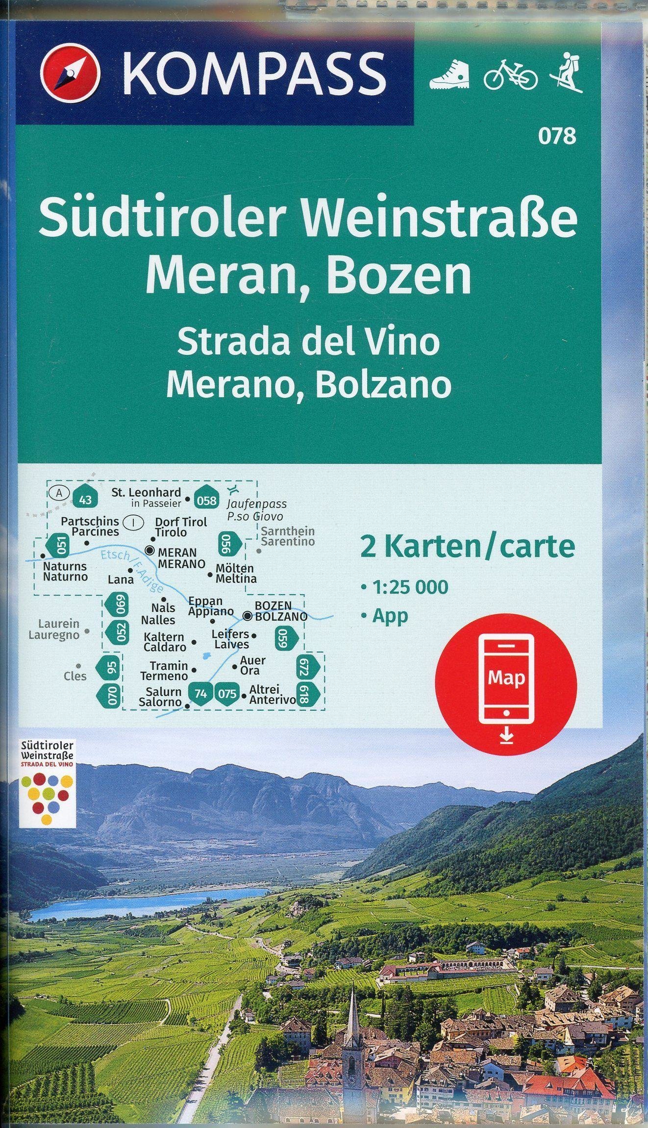 KOMPASS Wanderkarte Südtiroler Weinstraße, Meran, Bozen 1:25 000