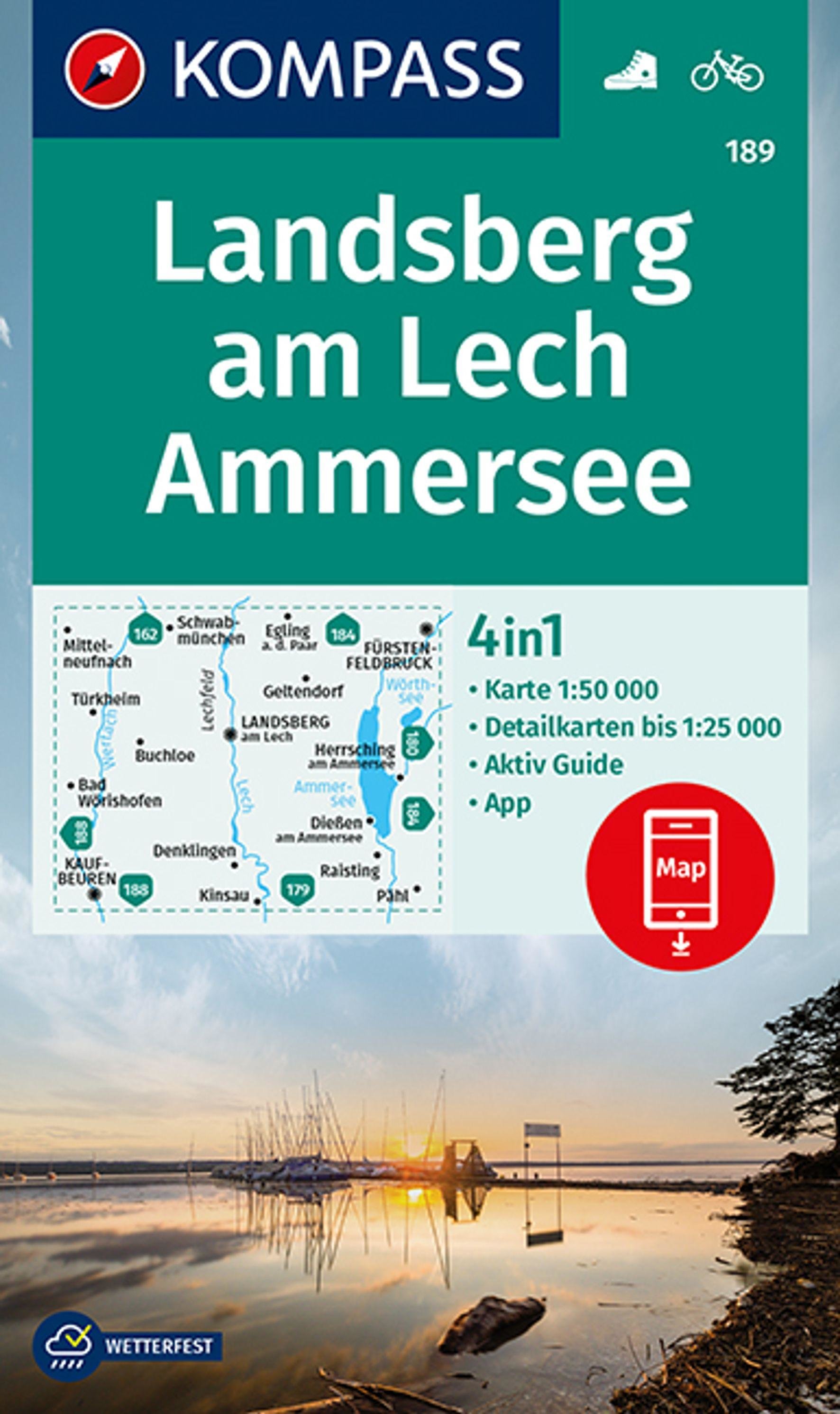 KOMPASS Wanderkarte Landsberg am Lech, Ammersee 1:50 000  LZ bis 2026