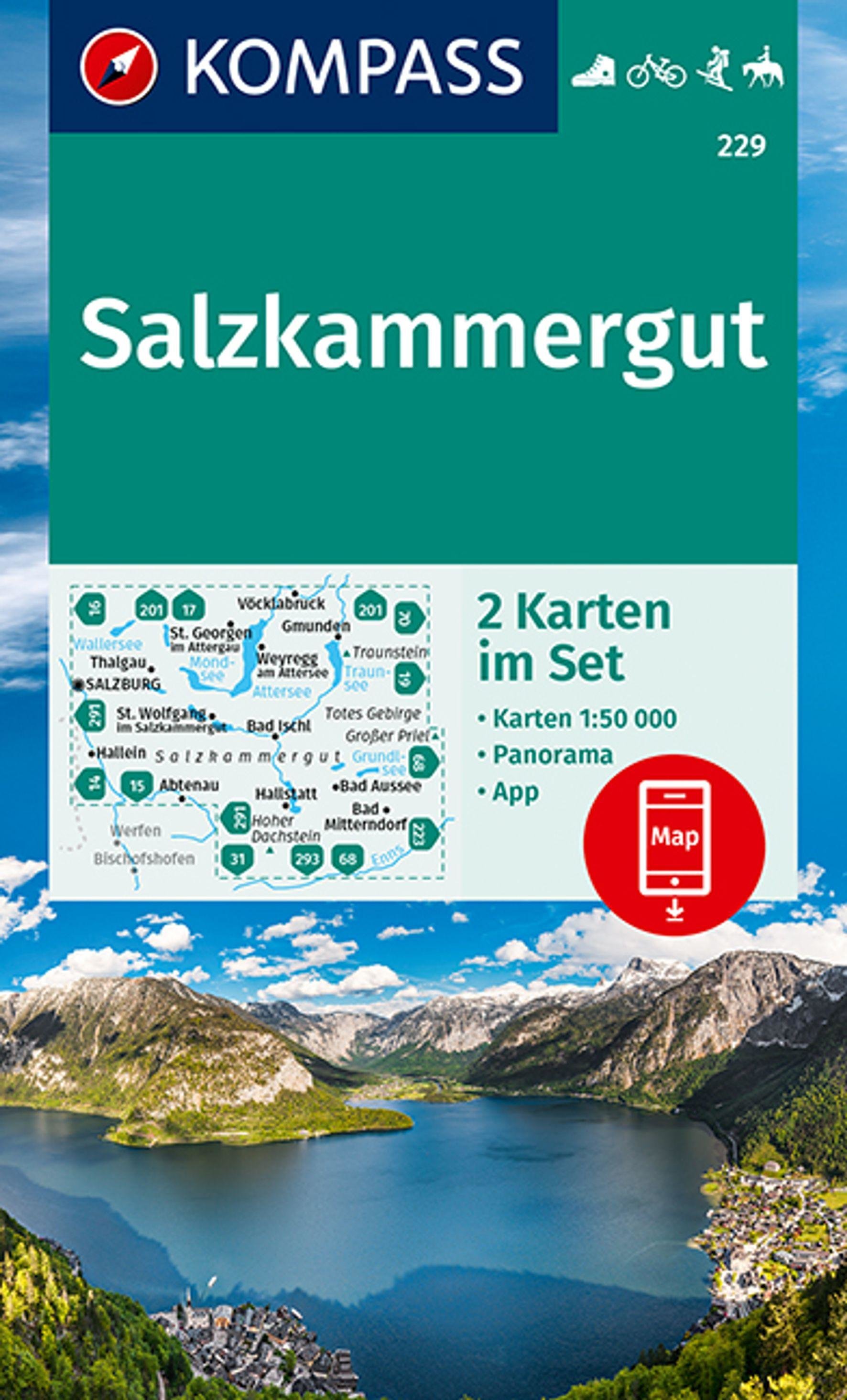 KOMPASS Wanderkarte 229 Salzkammergut 1:50000 (2 Karten im Set) (německy)