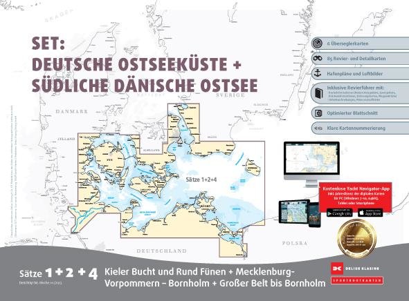 Sportbootkarten Satz 1, 2 und 4 Set: Deutsche Ostseeküste und Südliche Dänische Ostsee (Ausgabe 2023) (německy)