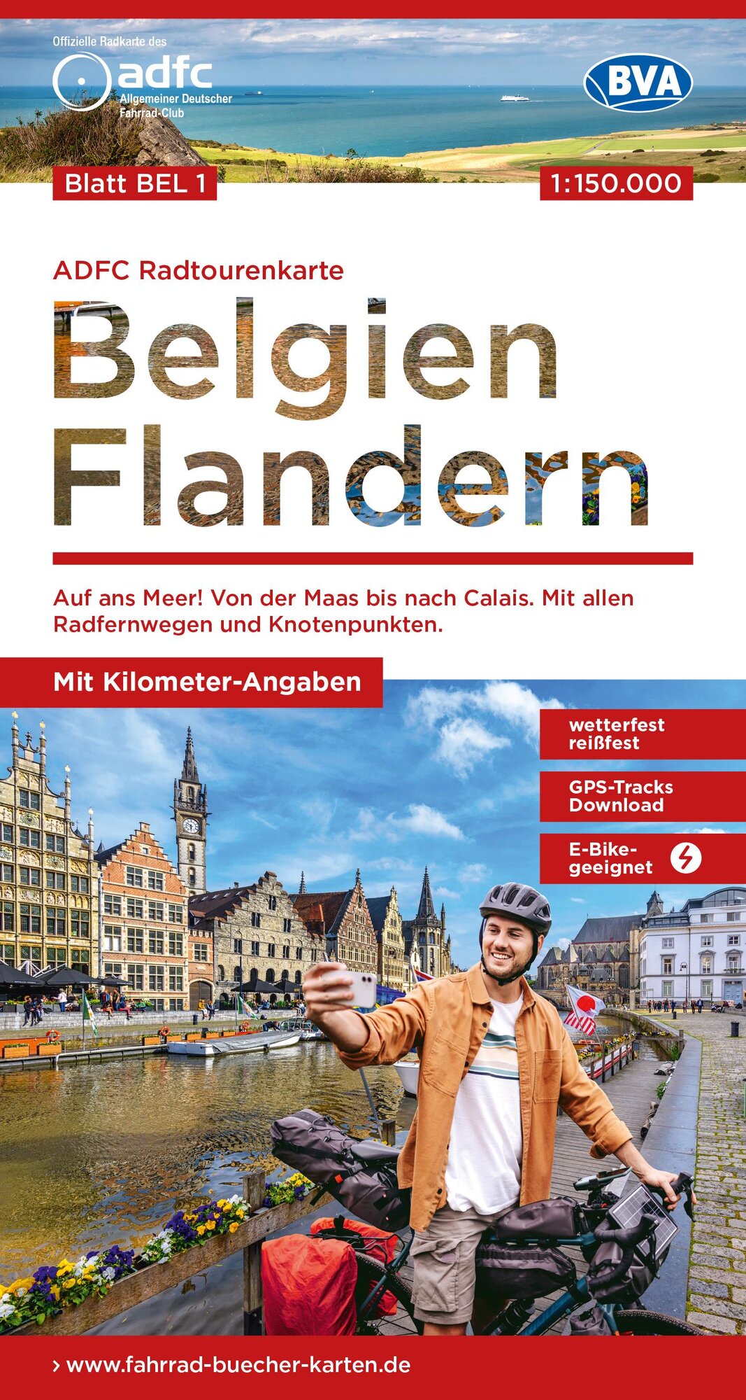 ADFC-Radtourenkarte BEL 1 Belgien Flandern 1:150.000, reiß- und wetterfest, E-Bike geeignet, GPS-Tracks Download (německy)