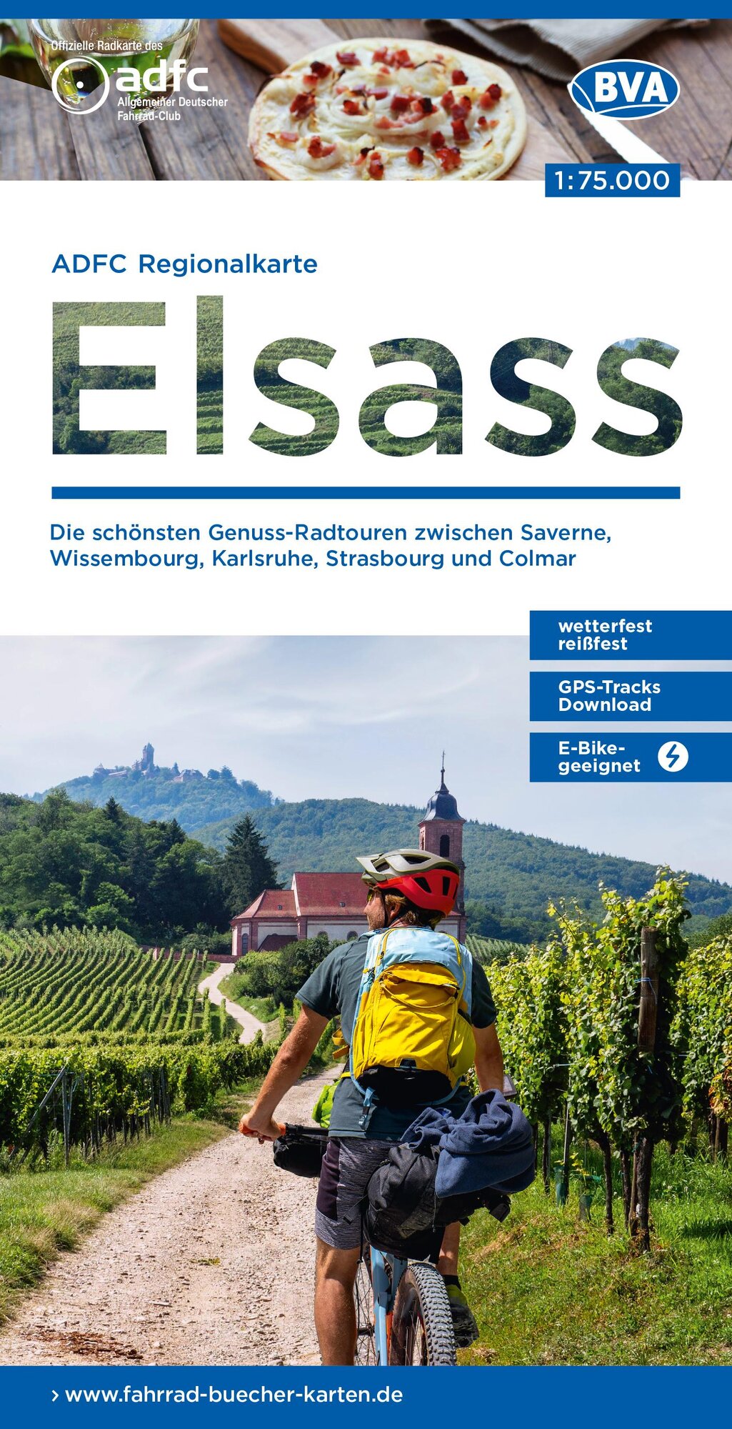 ADFC-Regionalkarte Elsass, 1:75.000, mit Tagestourenvorschlägen, reiß- und wetterfest, E-Bike-geeignet, GPS-Tracks Download (německy)
