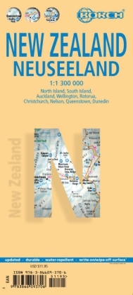 Unsere folienbeschichtete Karte von Neuseeland in der 10. Auflage beinhaltet: Nordinsel 1:1 300 000, Südinsel 1:1 300 000, Auckland 1:20 000, Christchurch 1:20 000, Dunedin 1:15 000, Nelson 1:15 000, Rotorua 1:15 000, Queenstown 1:15 000, Wellington 1:20 000, eine administrative Übersichtskarte...