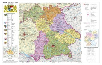 Stiefel Wandkarte Kleinformat Bayern, politisch mit Postleitzahlen, mit Metallstäben (německy)