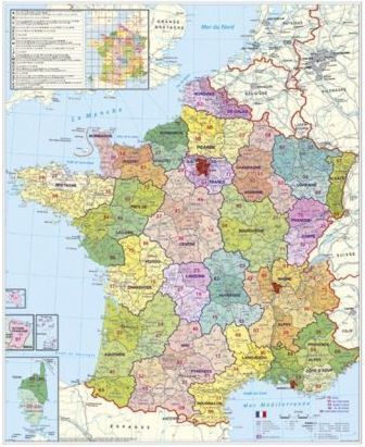Stiefel Wandkarte Großformat Frankreich, Postleitzahlen, ohne Metallstäbe