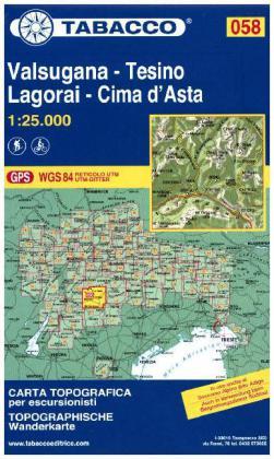 Tabacco topographische Wanderkarte Valsugana - Tesino- Lagorai - Cime d'Asta (italsky)