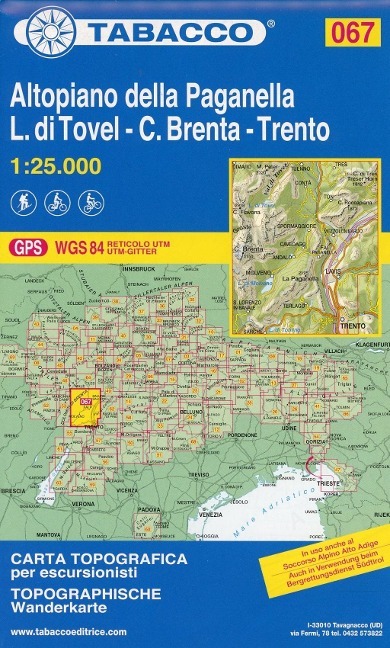 Tabacco topographische Wanderkarte Altopiano della Paganella
