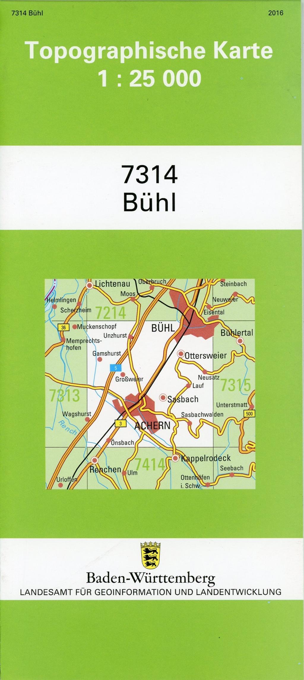 Topographische Karte Baden-Württemberg Bühl (německy)