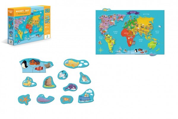 Magnetická hra Mapa světa 145ks v krabici 37,5x29,5x6,5cm