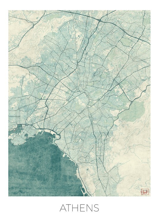 Mapa Athens, Hubert Roguski, 30 × 40 cm