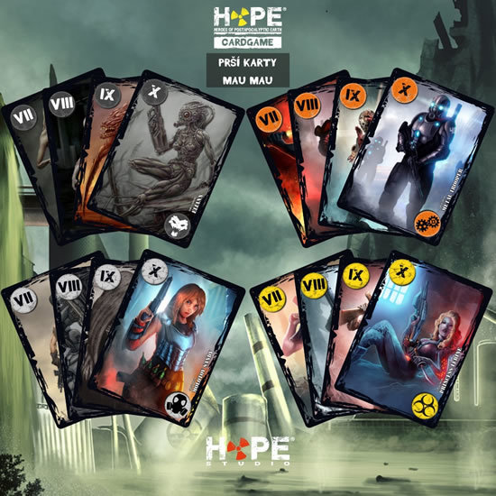 Prší karty byly, jsou a budou i v budoucnosti oblíbenou a jednoduchou karetní hrou pro všechny hráče i příležitosti. Jednohlavé, dvouhlavé, tradiční i moderní, tak proč ne třeba… postapokalyptické?! Zažijte neuvěřitelnou atmosféru při hraní HOPE Prší karet, které obsahují 32 jednohlavých karet v designu karetní a deskové hry HOPE Cardgame, a ponořte se do světa alienů, botů, lidí a mutantů, kde o sedmičky není nouze! Léty osvědčená logika není změněna, ale srdce, piky, káry a kříže jsou originálně nahrazeny ikonami ras. Kvalita karet a neomezená zábava je samozřejmostí.