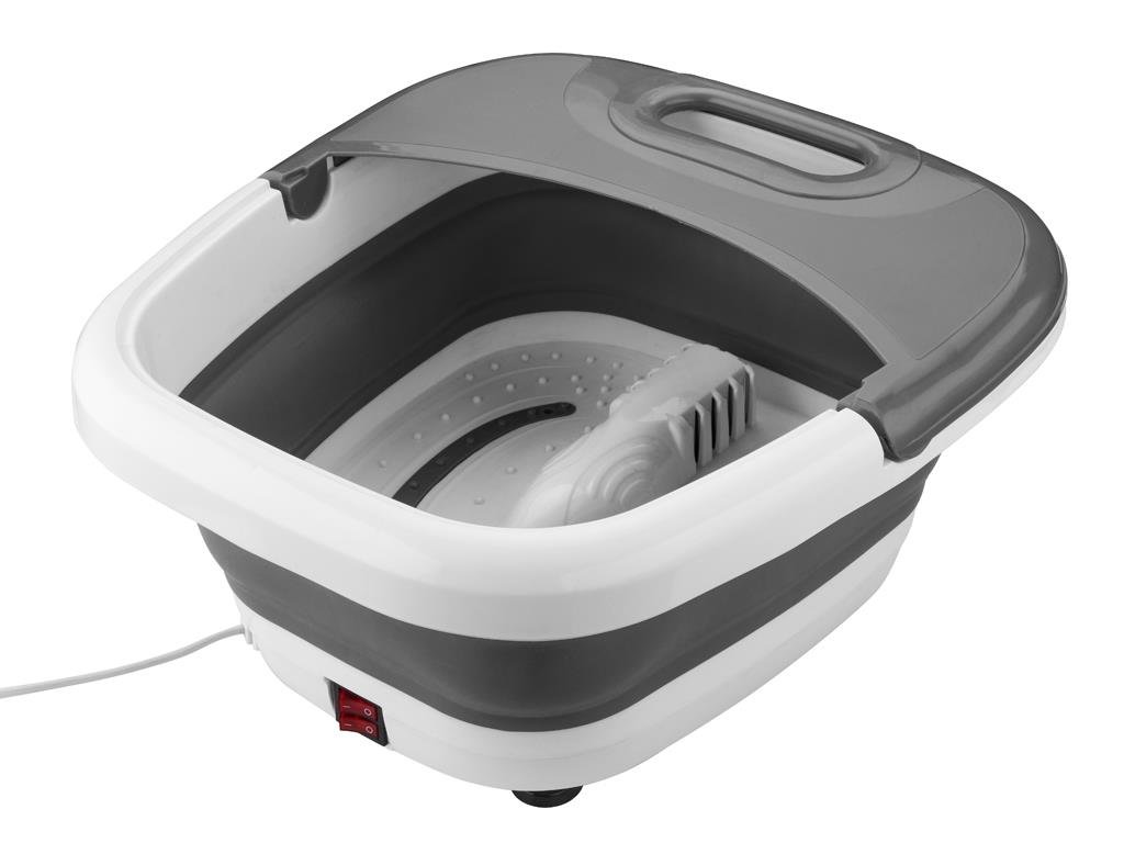 výkon 350 W skládací silikonové pouzdro, vibrační masáž, bublinková masáž, infračervené záření zahřívání vody na 45°C, Ochranný kryt proti stříkající vodě, vnitřní hloubka 16 cm úchyt k přenášení protiskluzové nožičky 220-240V, 50/60 Hz, Délka kabelu 154 cm