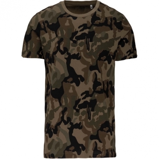 Pánské tričko Camo od značky Kariban. Má krátký rukáv s kulatým výstřihem.• Jemný materiál příjemný na dotek• Zpevňující lemovka za krkem v barvě trička• Zakončení dvojitým švem, bez etikety• Žebrovaný náplet u krku obsahuje elastan