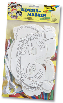 Vybarvěte, slepte a ozdobte si vlastní masku. Předtištěné linie Vám s tím pomohou. Pokud máte svůj vlastní nápad na zdobení masky, použijte zadní stranu masky. Nakonec provlékněte připravenými dírkami gumu a zábava může začít.